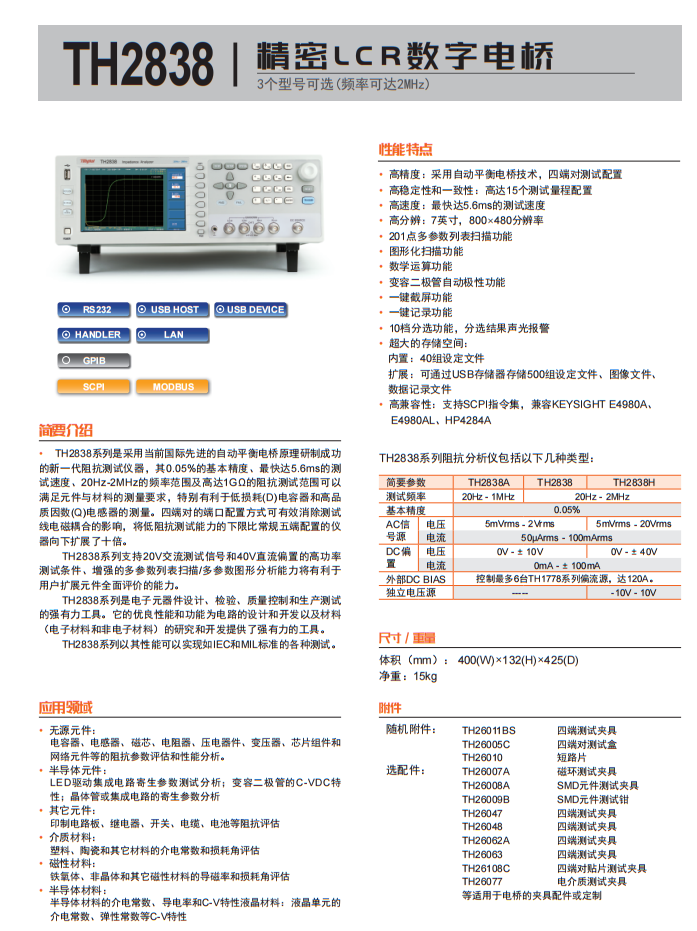 同惠TH2838/TH2838H/TH2838A 系列精密LCR數(shù)字電橋
