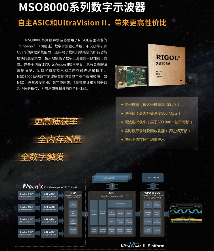 MSO8000系列數(shù)字示波器是基于RIGOL自主知識產(chǎn)權(quán)的ASIC芯片和UItraVisionII技術(shù)平臺的中高端混合信號數(shù)字示波器。