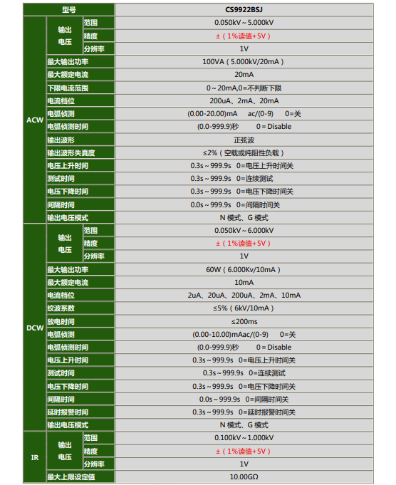 長盛CS9922BSJ程控耐壓絕緣測試儀